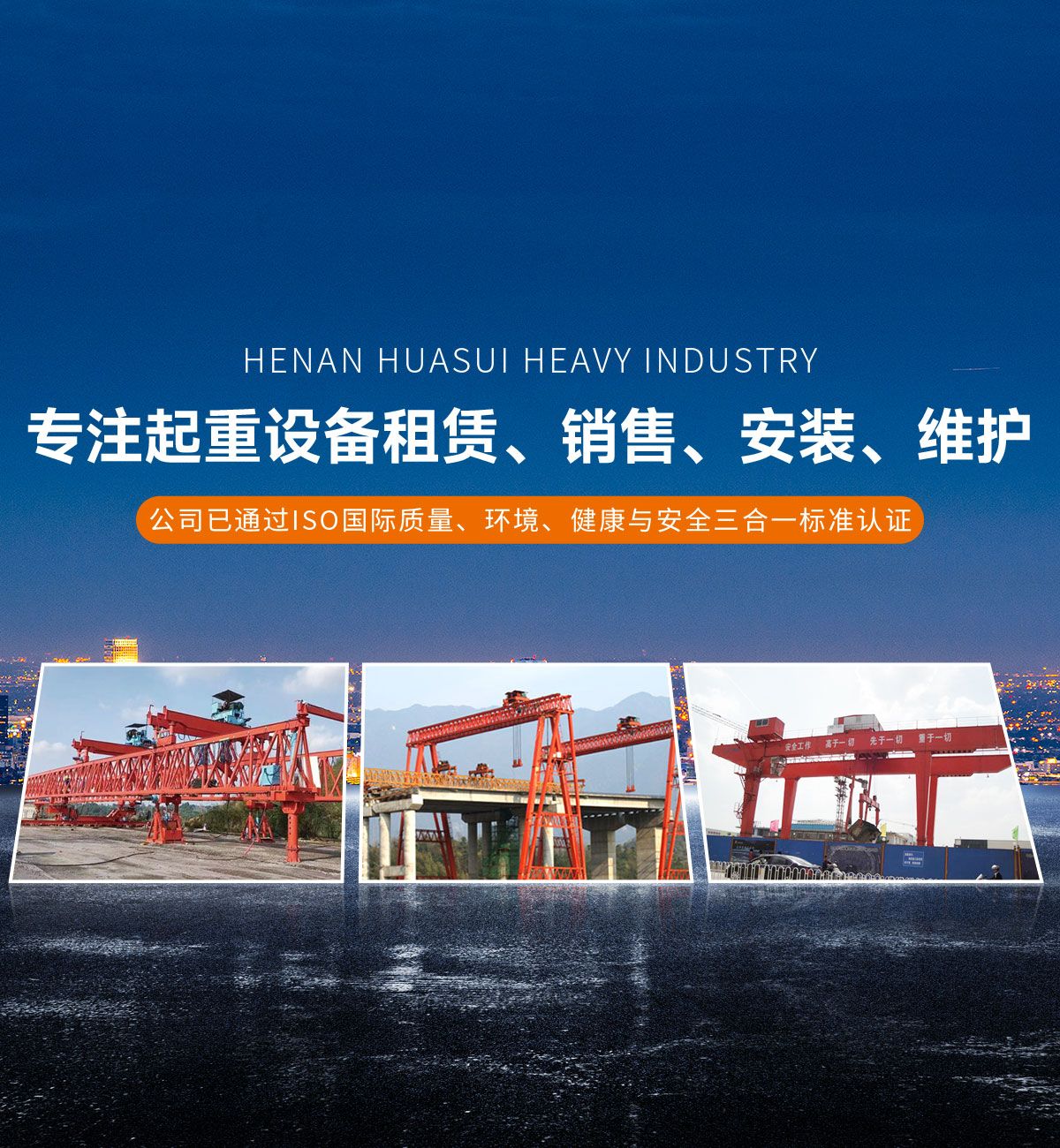 河南華隧重工機(jī)械裝備有限公司主要從事通用門(mén)式起重機(jī)、橋式起重機(jī)、電動(dòng)單梁起重機(jī),輪胎式起重機(jī)、架橋機(jī)、提梁機(jī)、遠(yuǎn)梁平車(chē)、鋼絲繩電動(dòng)萌蘆、卷?yè)P(yáng)機(jī)、起重配件制造、銷(xiāo)售:起重機(jī)械租賃、安裝和維修,起重設(shè)備園收,機(jī)械設(shè)備維修,鋼結(jié)構(gòu)工程承包,橋梁工程及技術(shù)咨淘服務(wù),銷(xiāo)售五金制品、機(jī)電設(shè)備:建設(shè)工程監(jiān)理,建設(shè)工程設(shè)計(jì),各類(lèi)工程建設(shè)活動(dòng),建筑勞務(wù)分包,建筑物折除作業(yè),施工作業(yè),工程管理服務(wù),土石方工程施工,裝如發(fā)運(yùn)。  公司已通過(guò)IS0國(guó)際質(zhì)量、環(huán)境、健康與安全三合一標(biāo)準(zhǔn)認(rèn)證,特種設(shè)備制造許可證和特種設(shè)備安裝改造維修許可證。擁有完熟的質(zhì)量管理體系。嚴(yán)格的管理制度,強(qiáng)大的生產(chǎn)能力和先進(jìn)的檢測(cè)手段,在保證產(chǎn)品質(zhì)量的同時(shí),也具備了極強(qiáng)的市場(chǎng)競(jìng)爭(zhēng)力。  公司堅(jiān)持科技創(chuàng)新為理念,產(chǎn)品質(zhì)量為核心,注重信譽(yù),建立了減信可靠、快捷、思速。便利周到的售后服務(wù)網(wǎng)絡(luò)。  我們擁有的技術(shù)專(zhuān)家和技術(shù)服務(wù)隊(duì)伍為客戶(hù)提供充善的售前技術(shù)支持和全天候的售后服務(wù)體系,讓您無(wú)后顧之憂(yōu),享受一站式的超值服務(wù)。  “華隧重工,伴您成功“是華隧重工永遠(yuǎn)的宗指,真被的希望與各界朋友攜手并進(jìn)。共創(chuàng)輝準(zhǔn)!